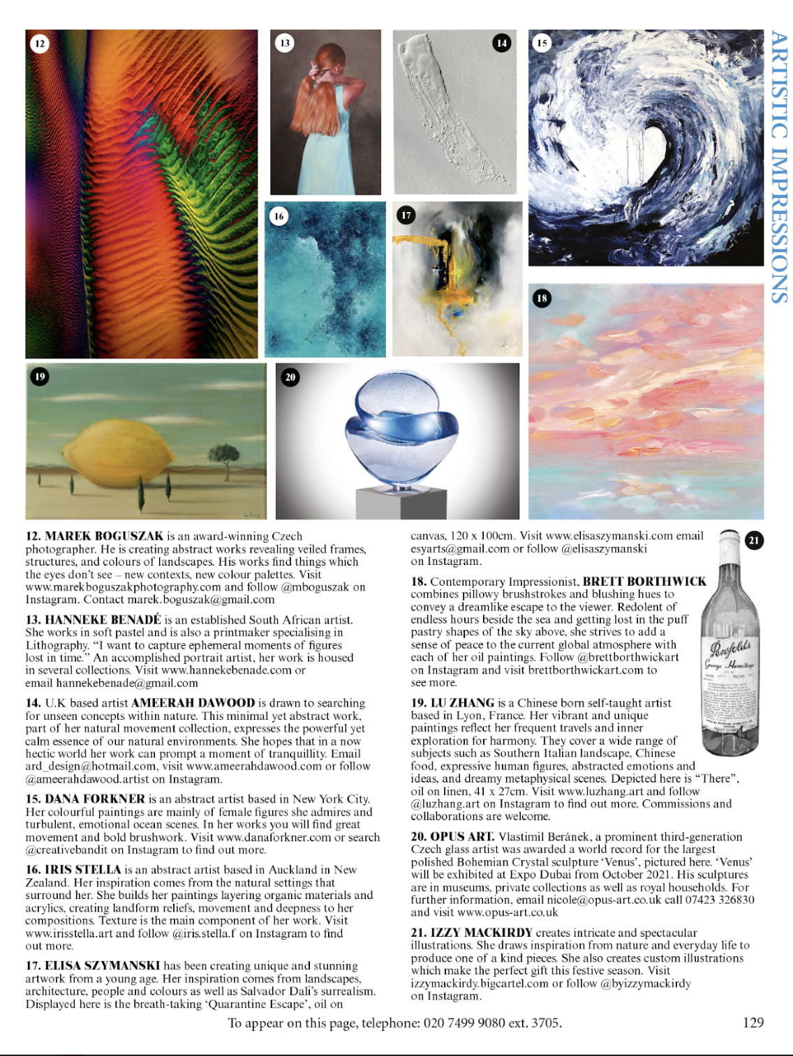 Various artworks of mine were represented by the prestigious Sorokin Gallery in Greenwich, Connecticut for the 2022/2023 show.