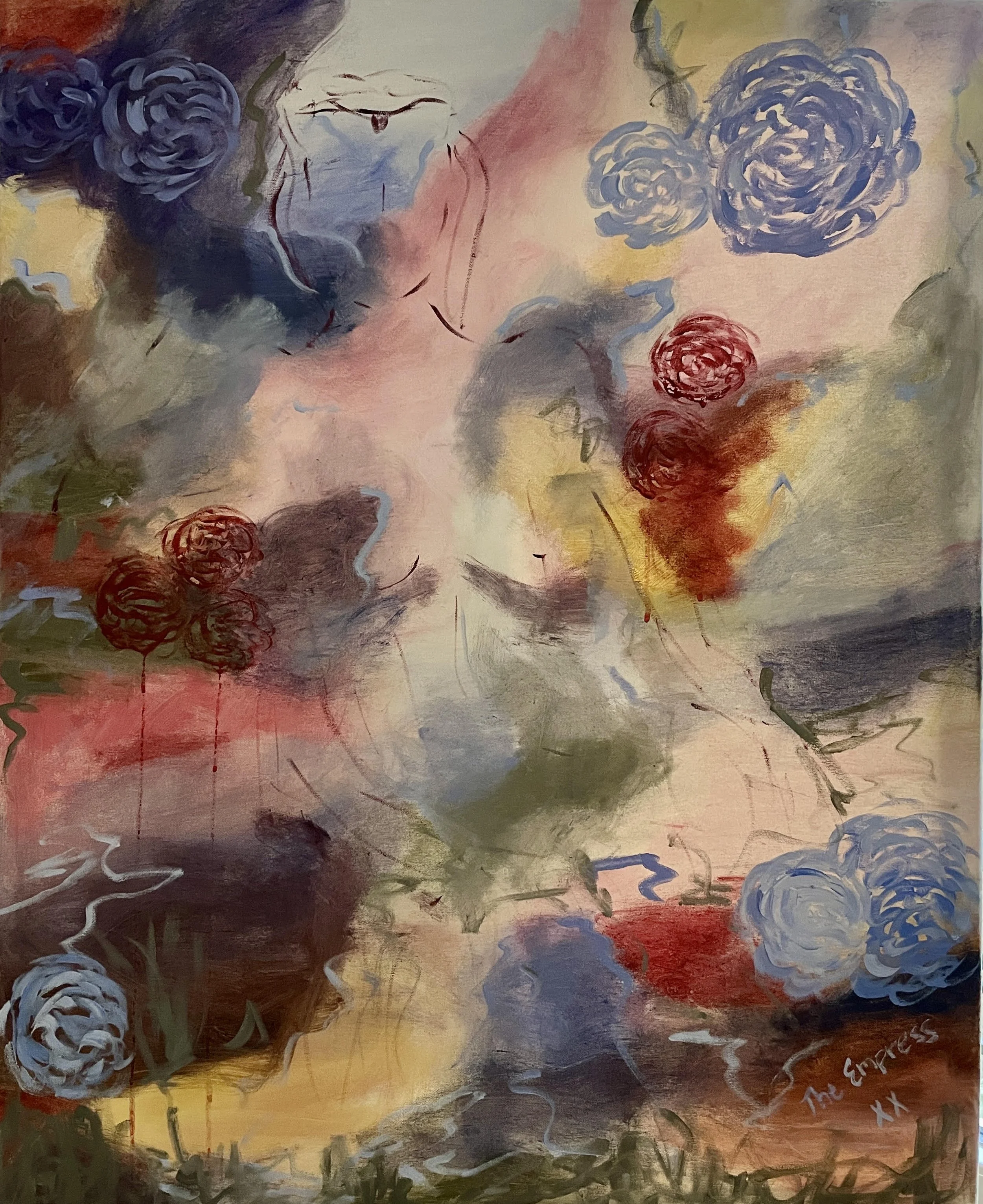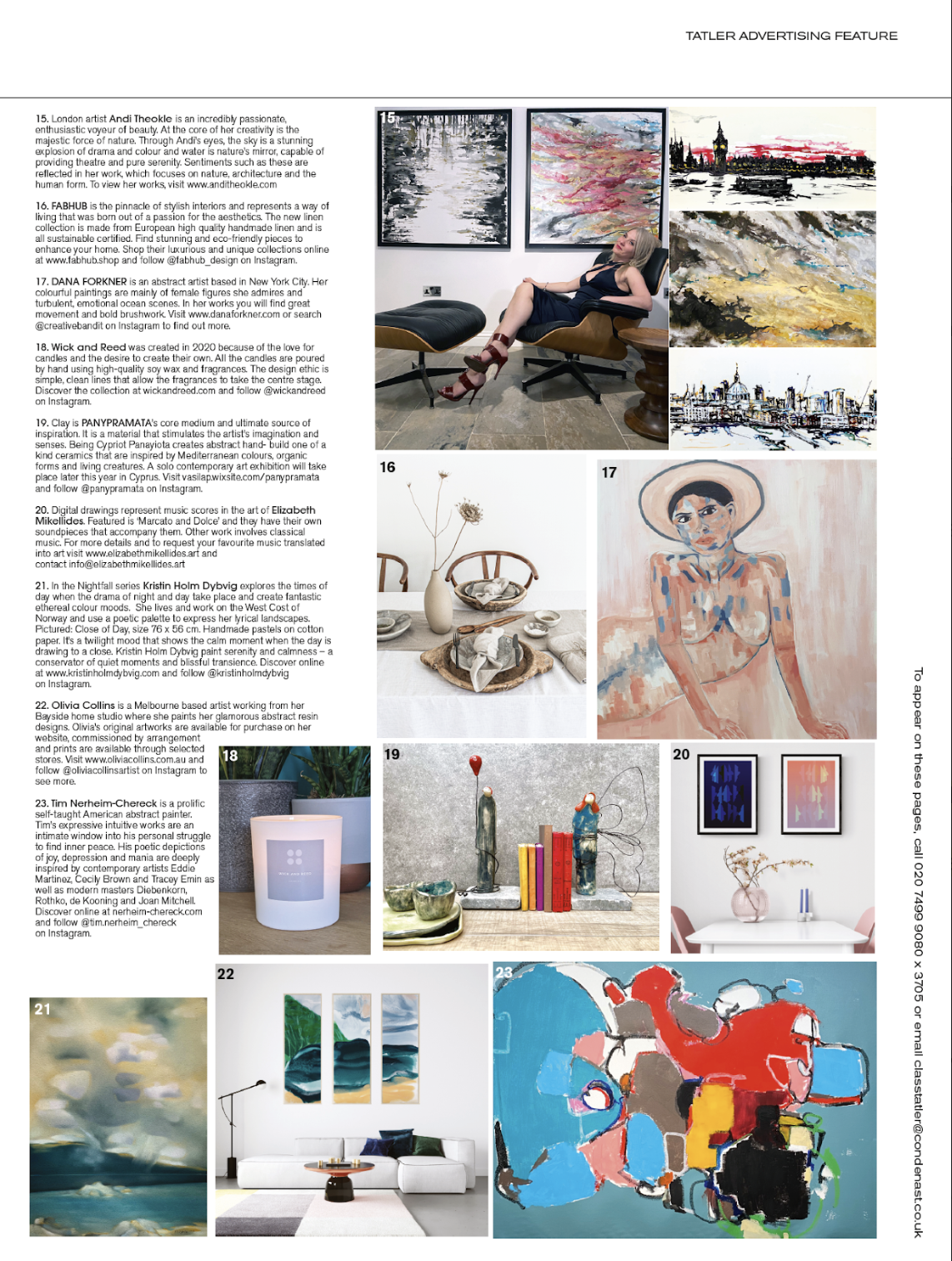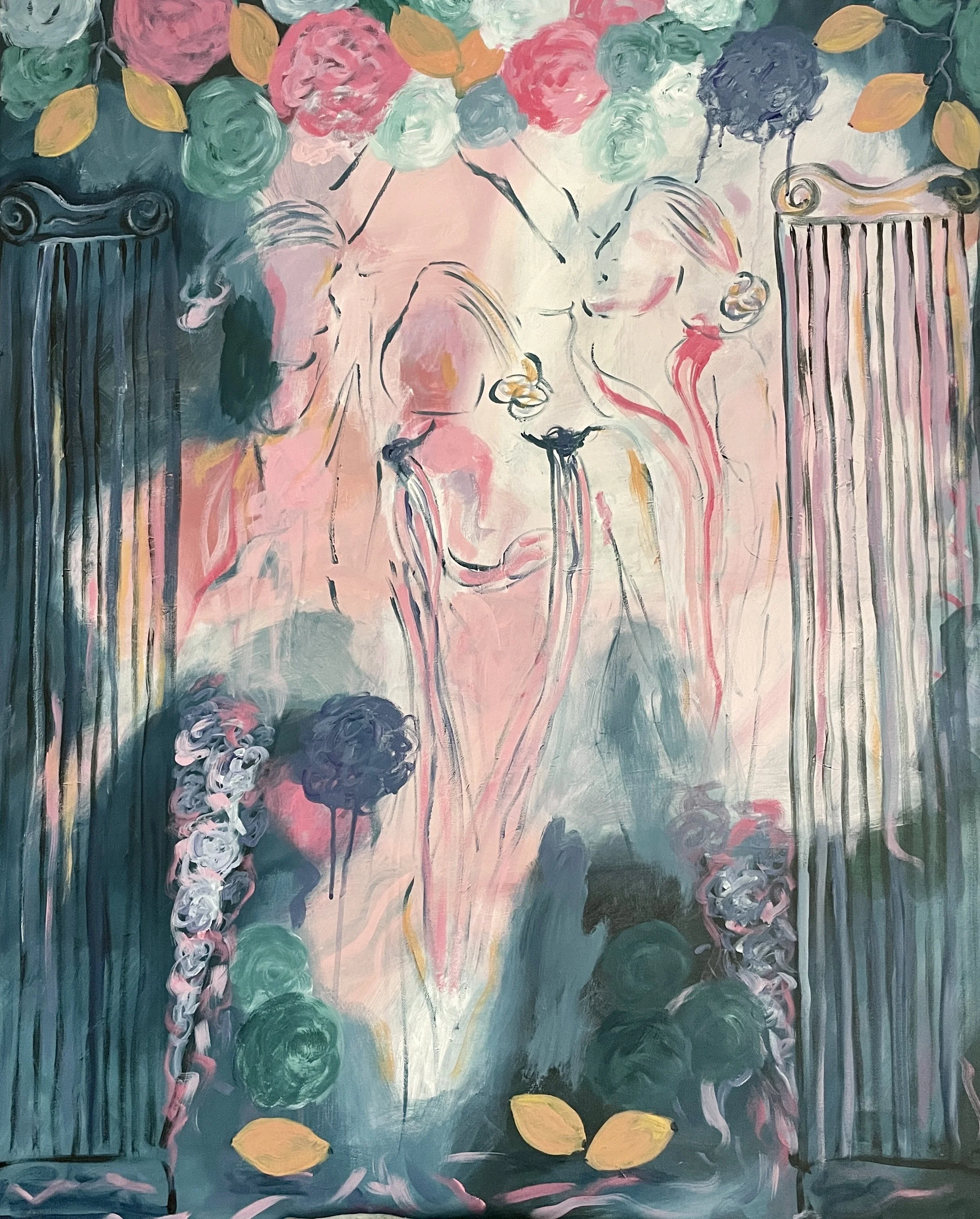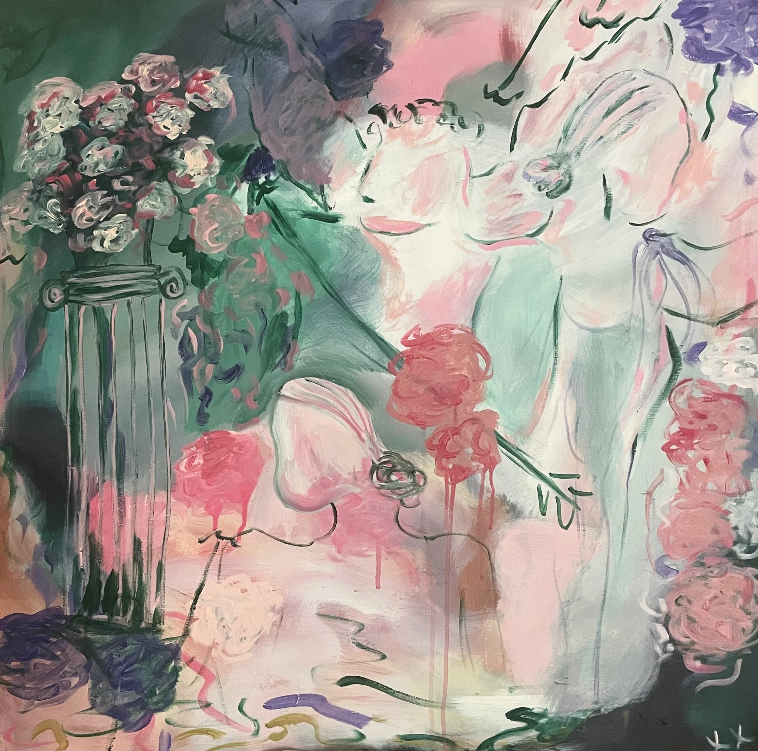 My summer 2022 series of bright, colorful, works blended perfectly with Patrick’s retail store adorned with antiques, classical sculptures, unique ceramics and contemporary art.